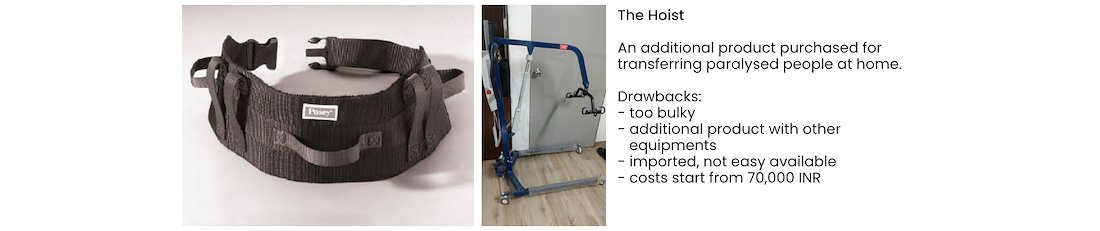 I tried out first to understand the points of pain while transferring fully paralysed person from wheelchair to bed. The manual process has a painful experience. Empathising was crucial for me to realise and get closer to the strong validation of this valuable area to work in.